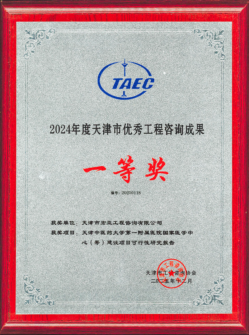 喜報(bào) 天津咨詢所屬宏亞公司榮獲2024年度天津市優(yōu)秀工程咨詢成果一等獎(jiǎng)