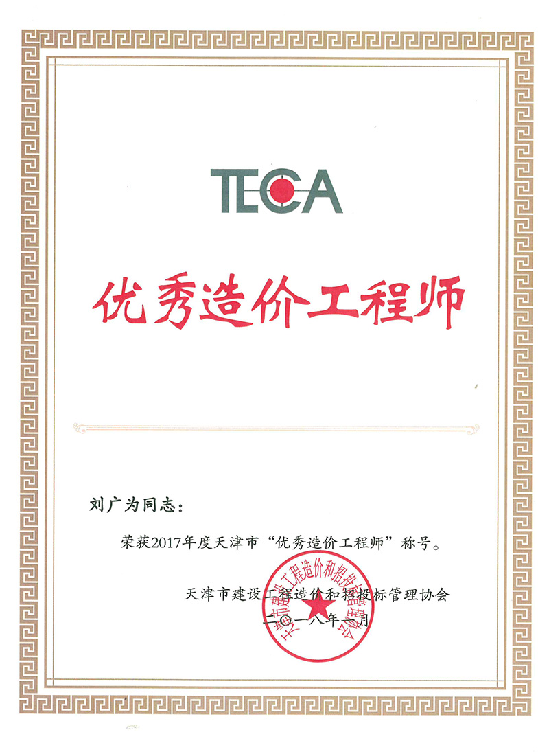 2017年度天津市優(yōu)秀造價工程師